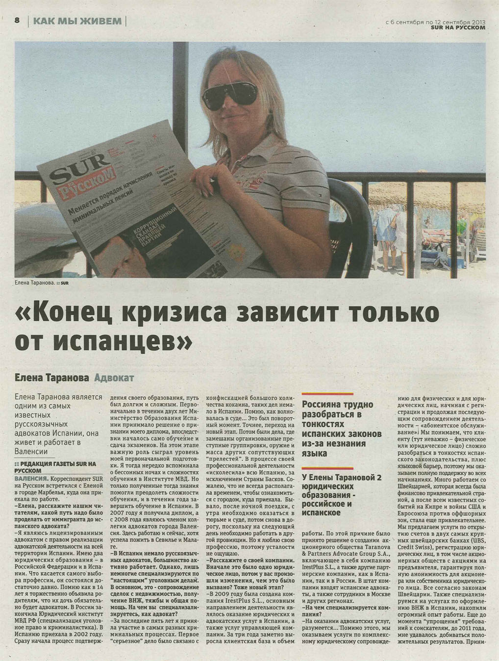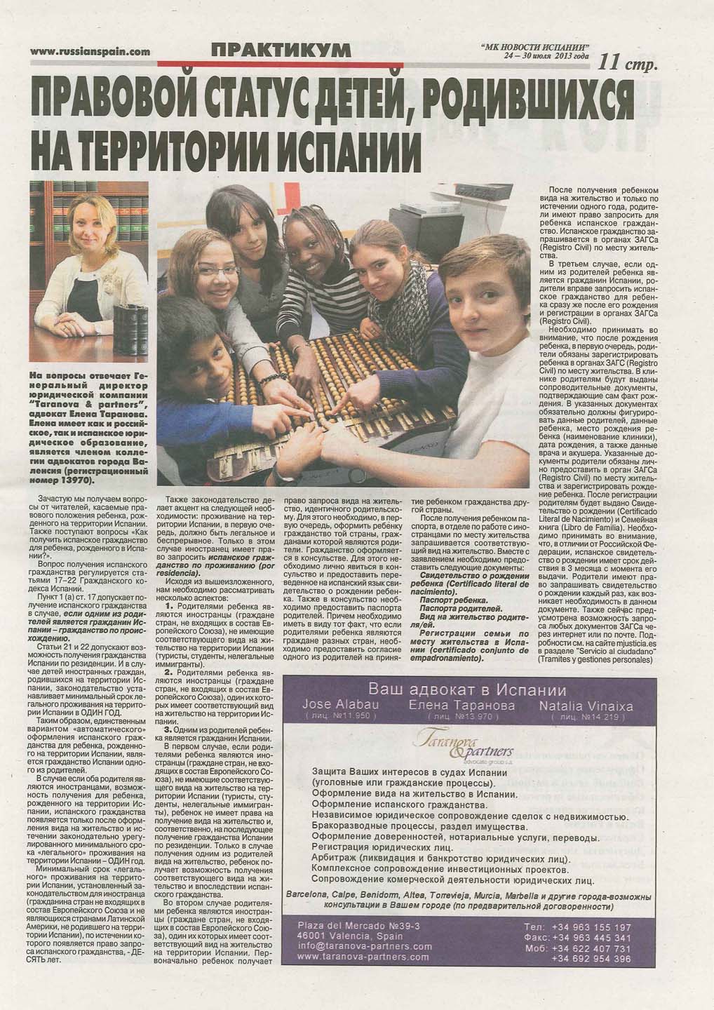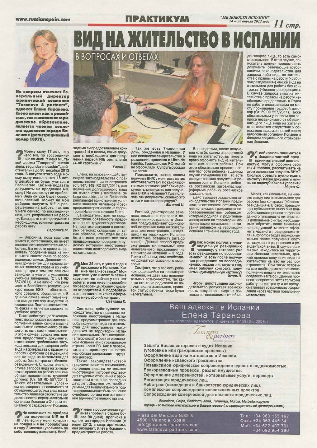 Управляющим партнером компании является Таранова Елена Владимировна – русскоговорящий адвокат в Испании, имеющий лицензию на ведение адвокатской деятельности на всей территории Испании (лицензия № 13.970 ICAV).