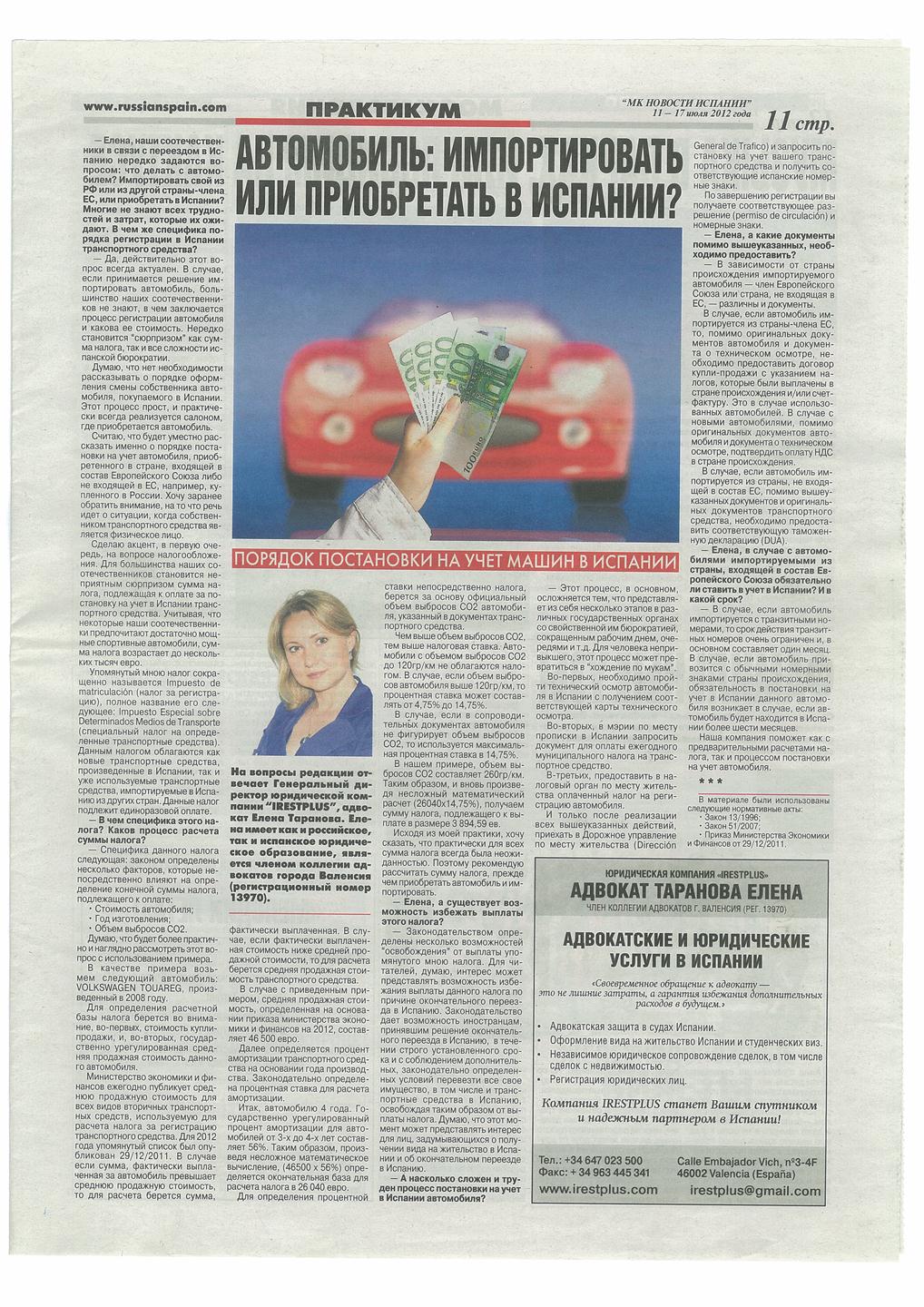 2002 - Член коллегии адвокатов города Валенсия ICAV 11.950